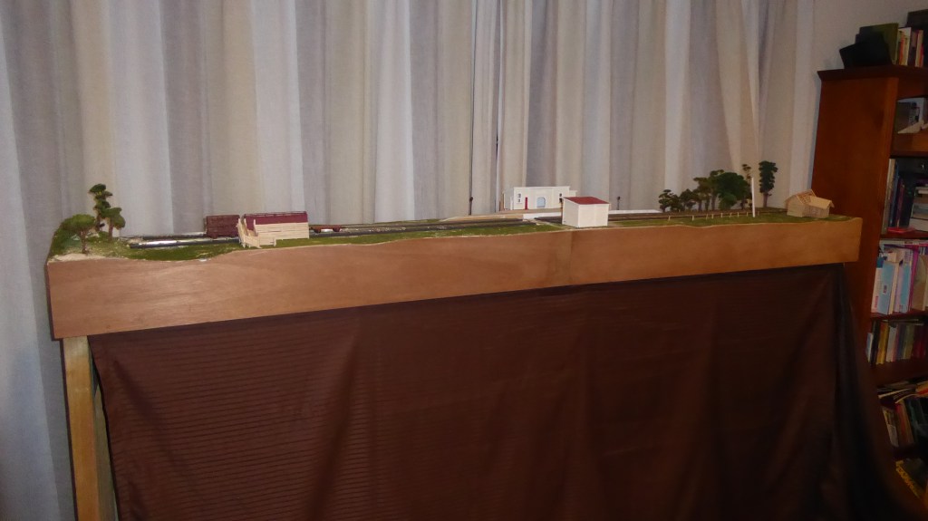 Fences – picket and 5 wire, Cattle / Sheep yard, Skirt for the bottom of the layout, Power poles, Station Water tank, Track points working correctly from the MBMRC show, and new supporting legs.