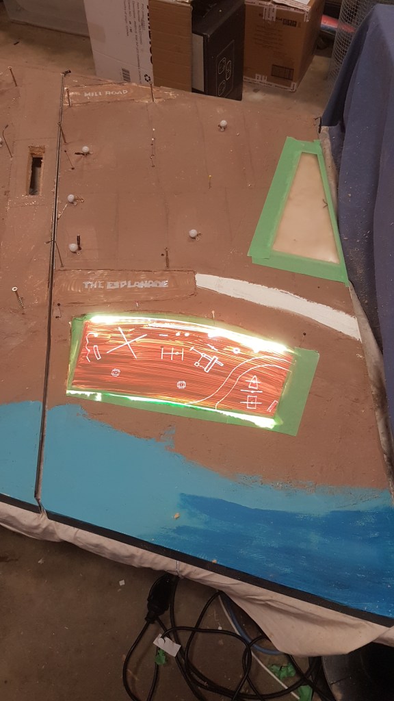 The Base is getting made from laminated plywood on a mobile base and a 8mm perplex cover over the top, the height of the model will stand approx 850 to the top of the perspex so that all children can see in.